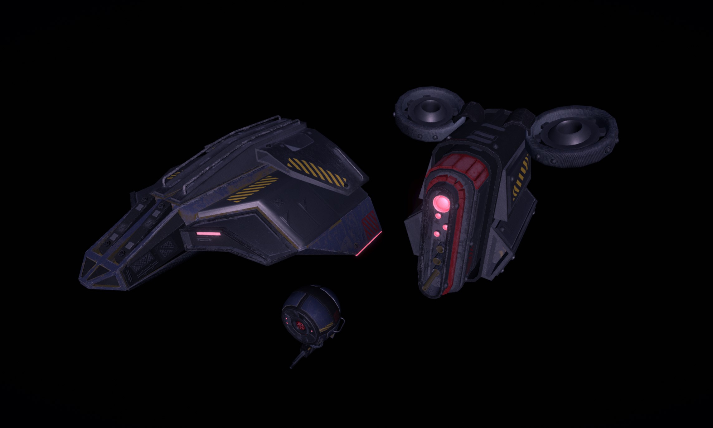 The hero ship is modeled using subd modeling and it is quite heavy on polys and frankly the poly flow could be better with less polygons but we had a short deadline so I let it pass.. But in turn the evil drones are very low on polys, so I think there’s quite good balance overall and it runs smoothly on PC.
