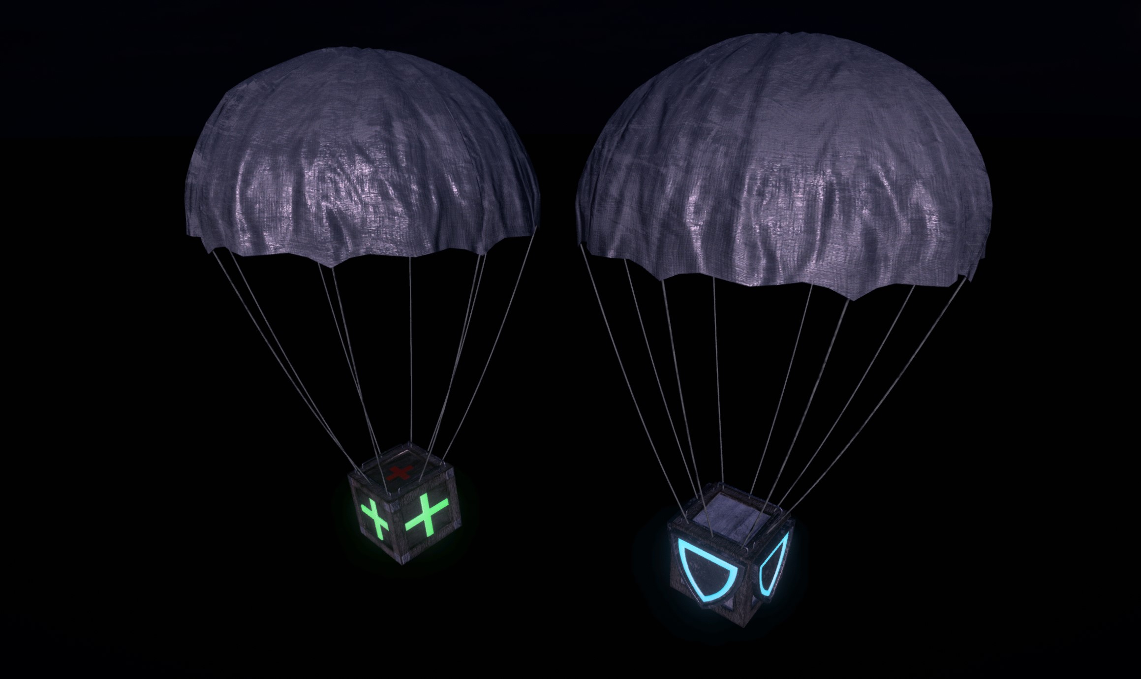Throughout the game your city government sends you parachute pickups which include health and shield.